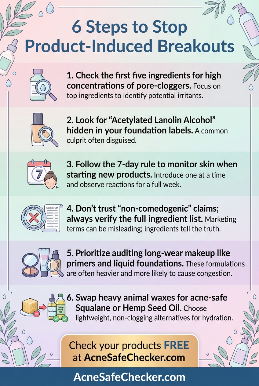 - Prioritize Your Base: Since foundations and primers sit on your skin for 8–12 hours a day, these are the most critical products to audit. Ensure your base makeup is free from high-ranking comedogens.