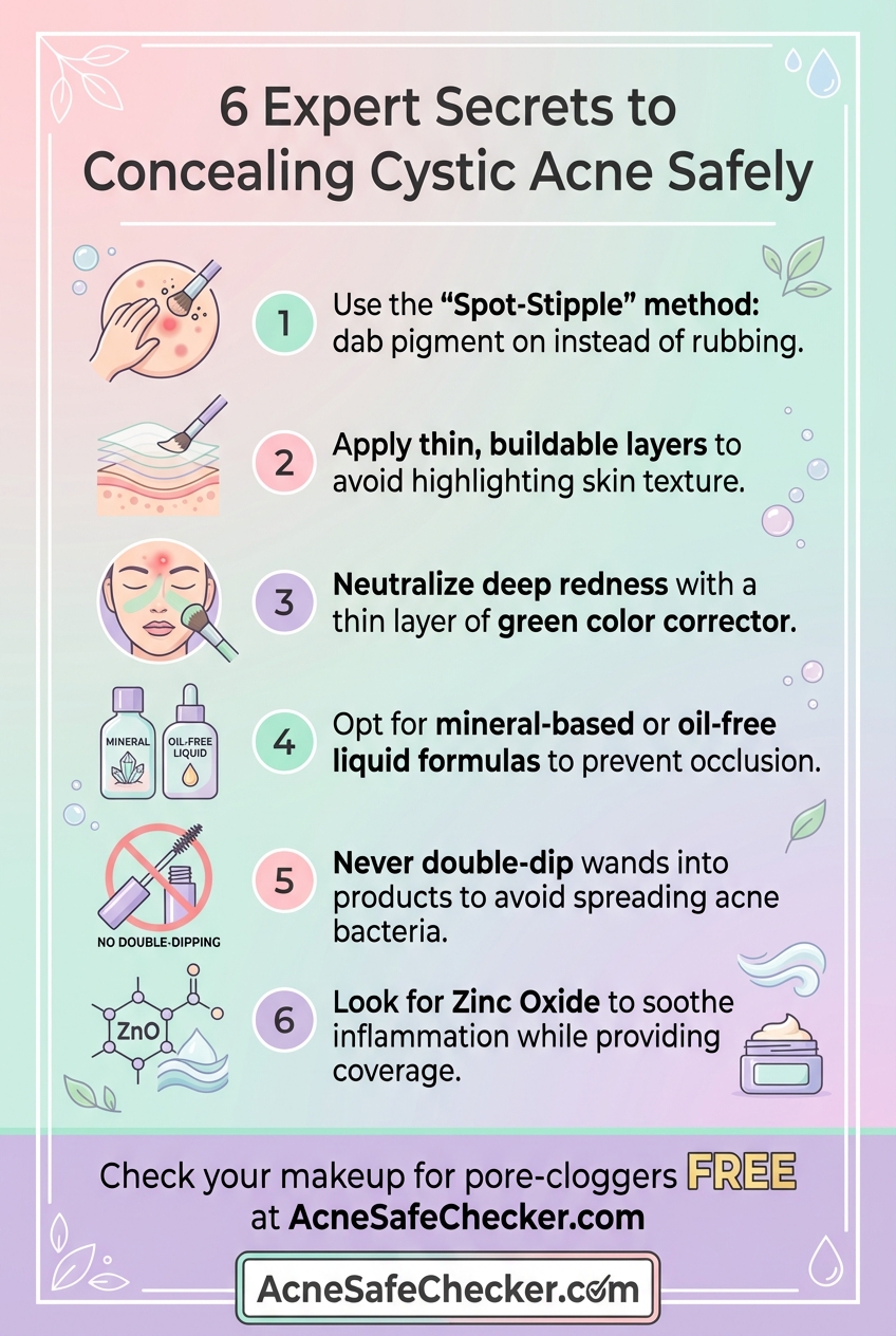 Mineral-based concealers (specifically those that are loose or pressed powder) are often the safest for acne. They contain fewer binders and waxes. However, they can sometimes struggle to cover the intense redness of a cyst. In these cases, a "cream-to-powder" mineral formula is often the best middle ground.