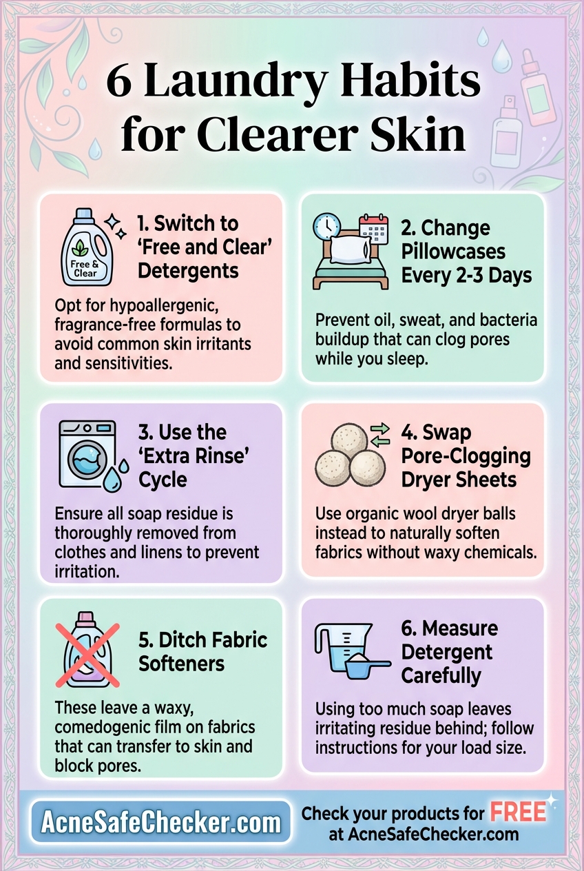 Managing acne-prone skin requires a holistic approach that goes beyond the bathroom cabinet. By switching to a fragrance-free, dye-free laundry detergent and eliminating fabric softeners, you remove a significant source of daily inflammation and pore-clogging residue. While it may take a few weeks to notice the difference, your skin barrier will thank you for the relief from harsh chemicals. Remember: clear skin starts with everything that touches your face, including your laundry.