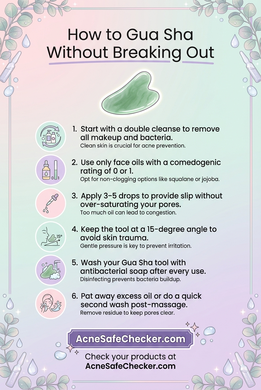 Gua Sha is a therapeutic practice that can improve circulation and reduce facial tension, but it shouldn't come at the cost of your complexion. By prioritizing high-linoleic, low-comedogenic oils like Squalane or Hemp Seed oil, and maintaining strict tool hygiene, you can achieve a glowing, sculpted look without the unwanted side effect of breakouts.