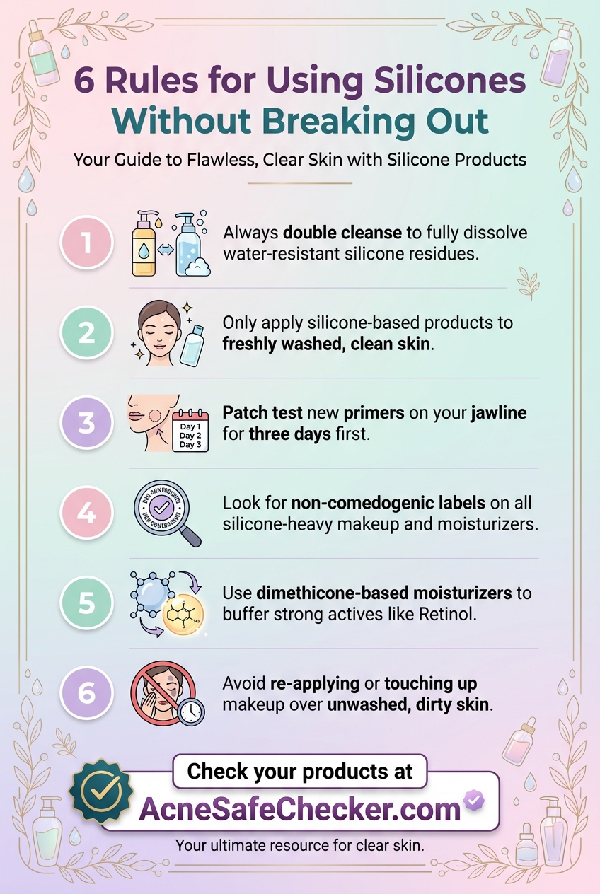 If you have acne-prone skin, you don't necessarily need to purge your vanity of all silicones. Instead, follow these professional guidelines:
