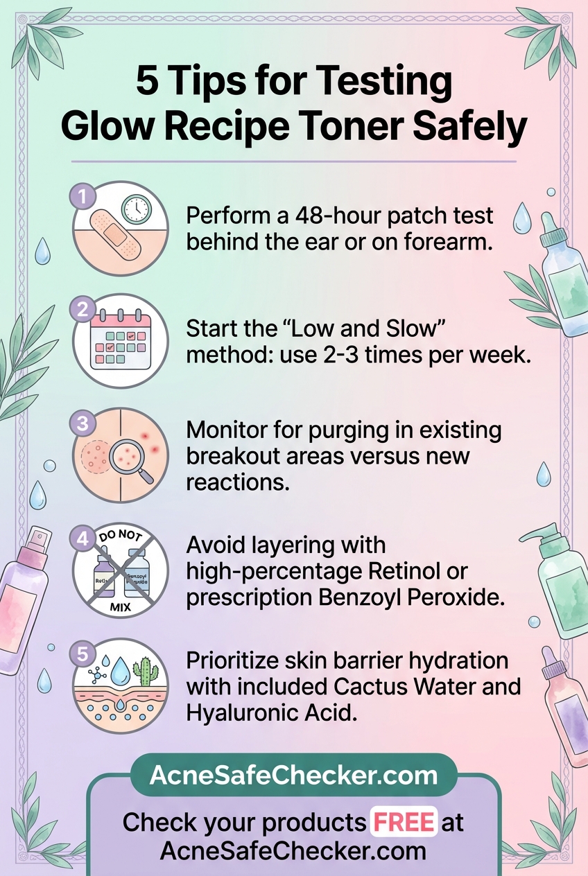 - The 48-Hour Patch Test: Apply a small amount of the toner to the inside of your forearm or just behind your ear. Wait 48 hours to see if any redness, itching, or small bumps appear.