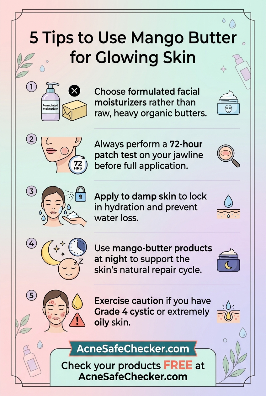 If you’re ready to try mango butter on your face, follow these professional tips to minimize the risk of breakouts: