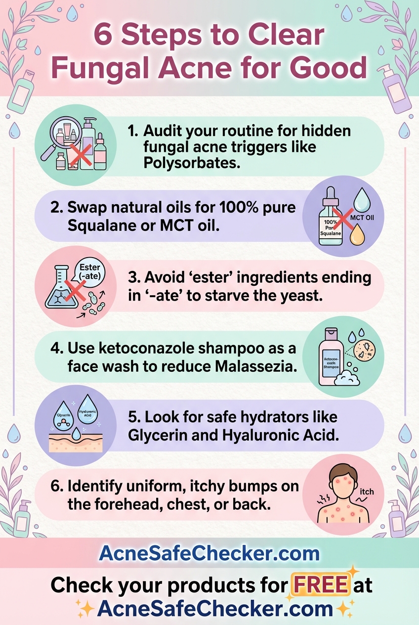 Managing fungal acne requires a strict elimination diet for your skin. Here is how to navigate your routine: