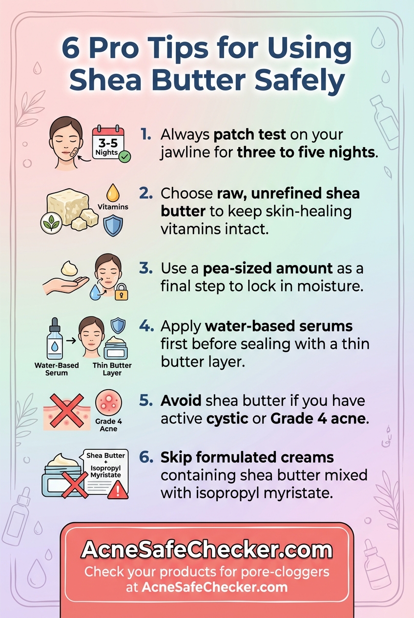 Often, it isn't the shea butter itself that causes the breakout, but the other ingredients in a cream. If your moisturizer contains shea butter alongside isopropyl myristate or certain algae extracts (high comedogenic ingredients), you may blame the butter when the culprit is actually a filler.