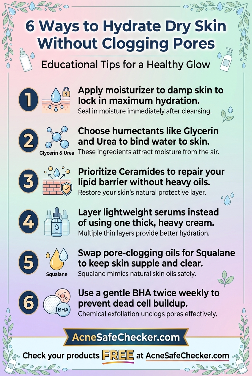 Dealing with closed comedones and dry skin requires a nuanced approach. You cannot simply blast the skin with acne actives, nor can you drench it in heavy oils. By choosing non-comedogenic humectants like glycerin and barrier-supporting ceramides, you can restore your skin's glow and smoothness simultaneously.