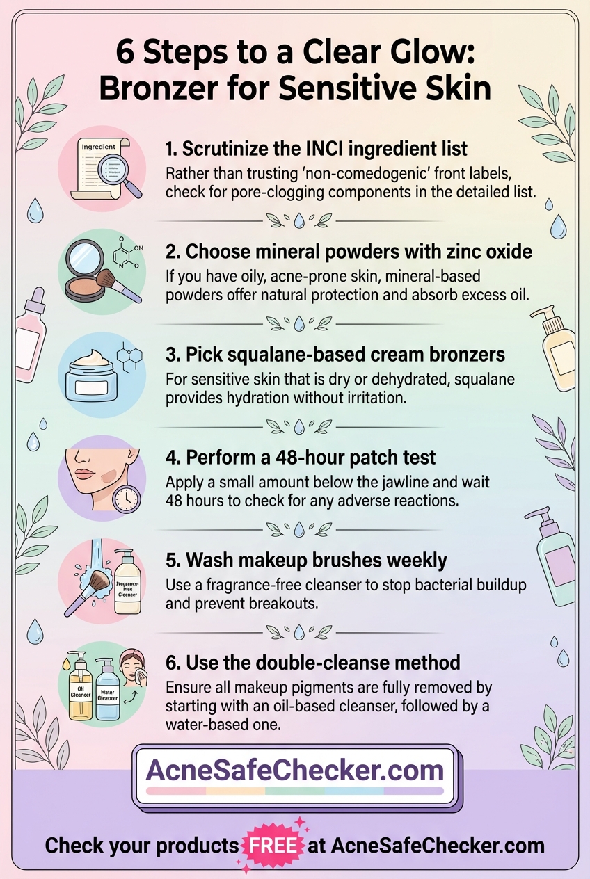 Achieving a radiant, sun-kissed look doesn't have to be a gamble with your skin's health. By prioritizing non-comedogenic, mineral-based formulas and avoiding known irritants like D&C dyes and bismuth oxychloride, you can enjoy the aesthetic benefits of makeup while keeping your pores clear and your barrier intact. Remember, the best bronzer is one that makes you feel confident without leaving a lasting reminder on your skin the next morning.