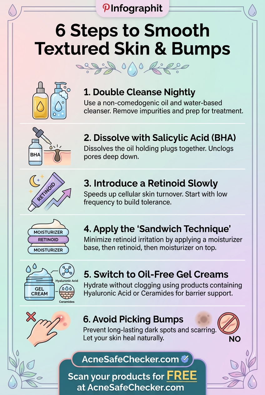 Smoothing skin texture and clearing closed comedones is not an overnight process, but it is entirely achievable with the right scientific approach. By prioritizing chemical exfoliation, incorporating a retinoid, and ensuring your products are truly non-comedogenic, you can regain a smooth, radiant complexion. If your condition persists after three months of a consistent routine, consult with a board-certified dermatologist to discuss prescription-strength options or professional chemical peels.